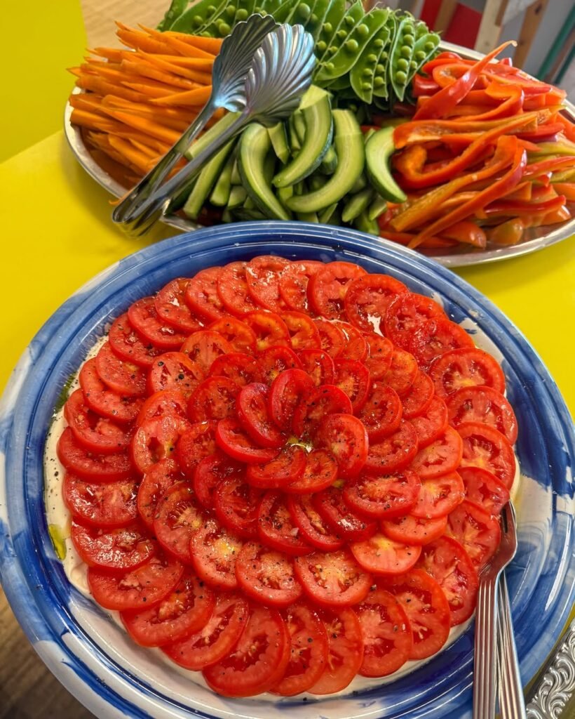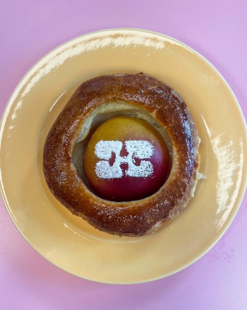 She enrolled in culinary school, graduating in 2019, and began catering with her best friend Lulu, an artist. They cooked for galleries and brands like Saks Potts. Ganni came into the picture in 2020, when Eva was booked for a Fashion Summit dinner that never happened due to Covid. Instead, she ended up cooking privately for Ditte and Nicolaj Reffstrup, Ganni’s founders, at their home. That dinner opened the door. Around the same time, Ganni’s staff had grown tired of catering. The brand invested in a professional kitchen, and by late summer 2021, Eva was cooking for the entire office every day.